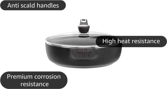 SUPER NONSTICK - The surface of the saute pan with lid is smooth and super nonstick, pancakes just slide right off the pan effortless. Only less oil is needed for cooking, for a healthy, low-fat diet.