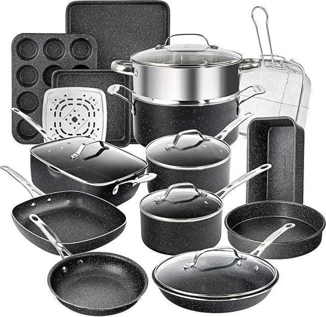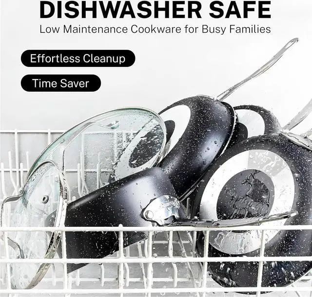 Easy Cleanup: Granitestone cookware is designed for an effortless wipe down after using and is completely dishwasher safe allowing you to simply throw your cookware and bakeware in the dishwasher after using for a quick and easy cleanup experience.