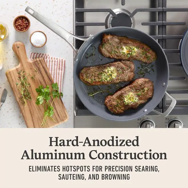 Hard-Anodized Aluminum Construction: Eliminates hotspots for precision searing, sauteing, and browning, for exceptional results every time.