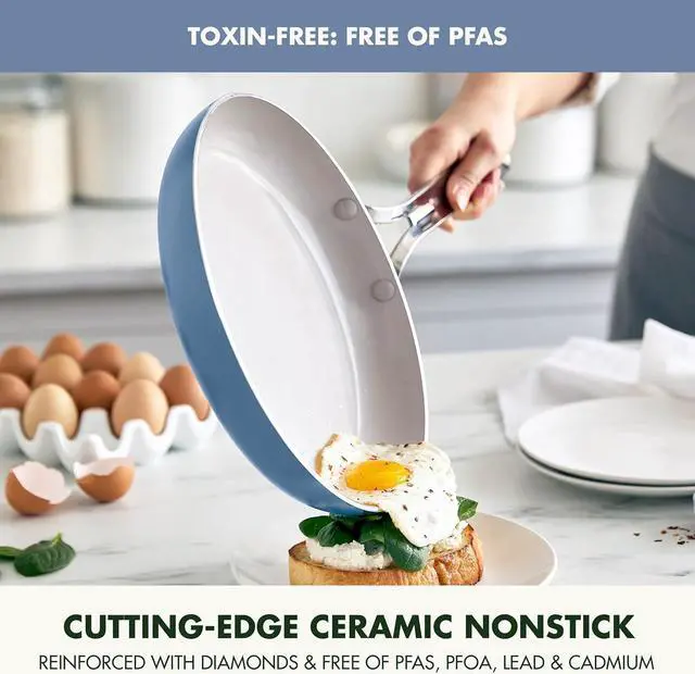 TOXIN-FREE: GreenPan' s Thermolon healthy ceramic nonstick coating is free of PFAS, PFOA, lead, and cadmium.