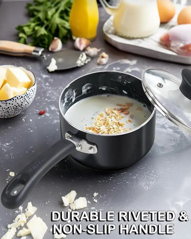 Easy to Clean: The non-stick coating of the sauce pot is easy to clean, uses less oil, and prevents food from sticking; Avoid metal utensils or sharp objects to prevent scratching the coating