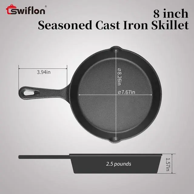 Perfect Sizes for Any DishSwiflon cast iron skillets come in two versatile sizes: 8 inches and 10 inches. The 8-inch skillet is perfect for small meals and sides, while the 10-inch skillet is ideal for larger dishes and family feasts. No matter the meal, weve got you covered