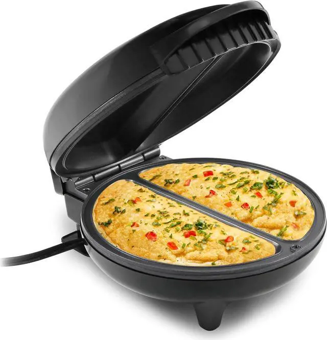 The NON-STICK COOKING SURFACE can make up to two individual portions of fluffy omelets or snacks in just minutes. Each Omelet sized 6.5 " x 3 x 1.5.