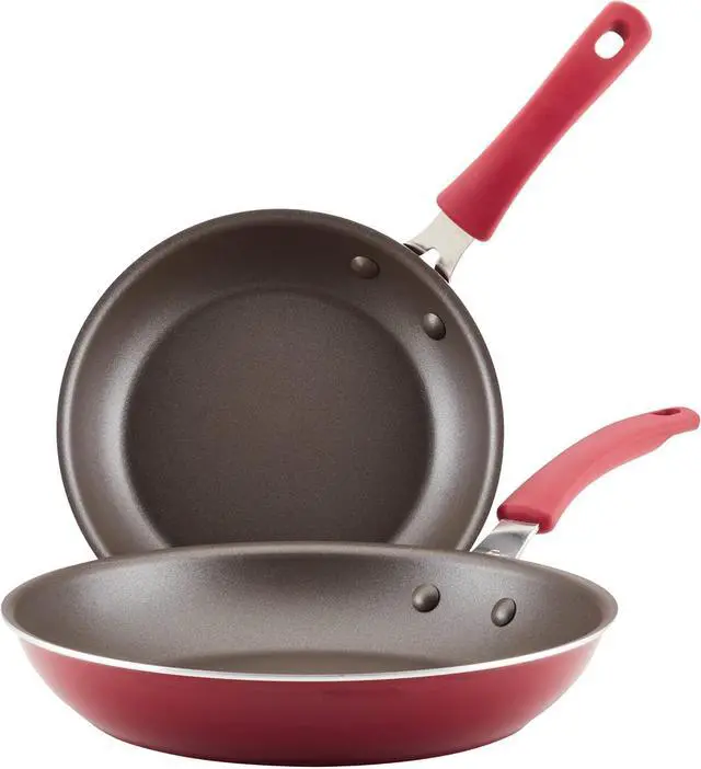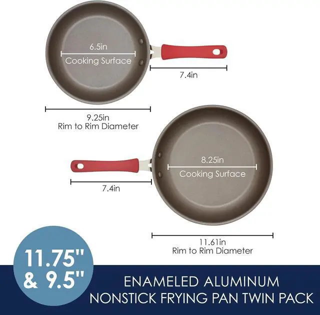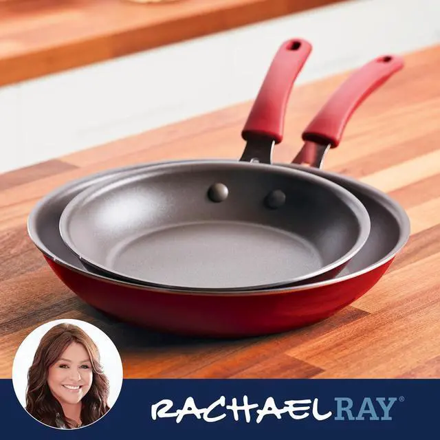 WHAT YOU GET: This twin pack of 9.5 -inch and 11.75 -inch frying pans from Rachael Ray is ideal for home chefs looking for performance with flair in a stylish and easy to clean kitchen skillet