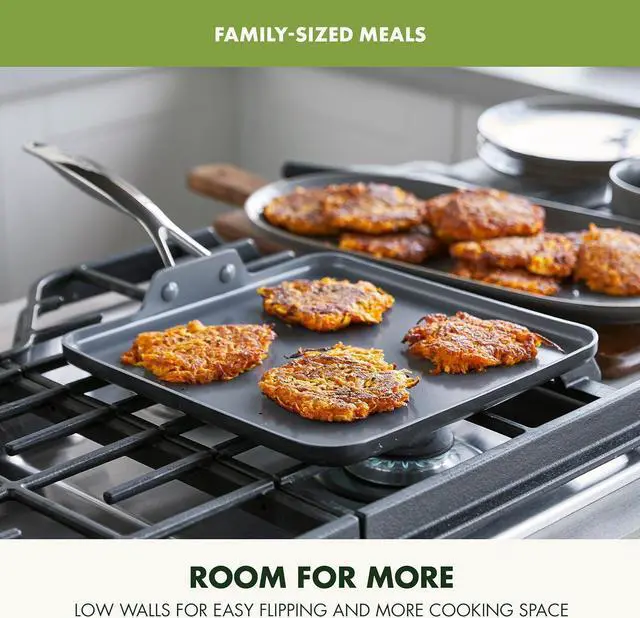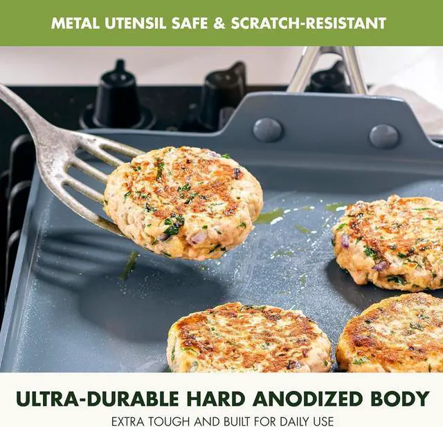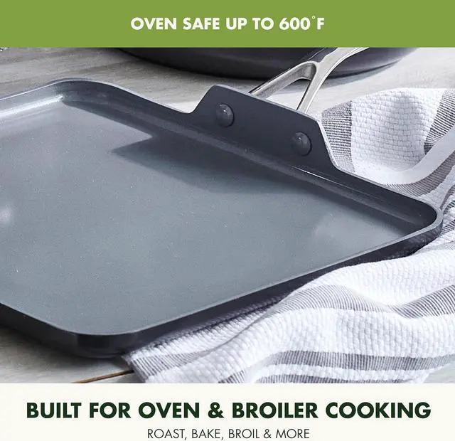 CUTTING-EDGE CERAMIC NONSTICK: Infused with diamonds, GreenPan' s metal utensil safe ceramic nonstick offers remarkable durability, balanced heating, and effortless cleanup.