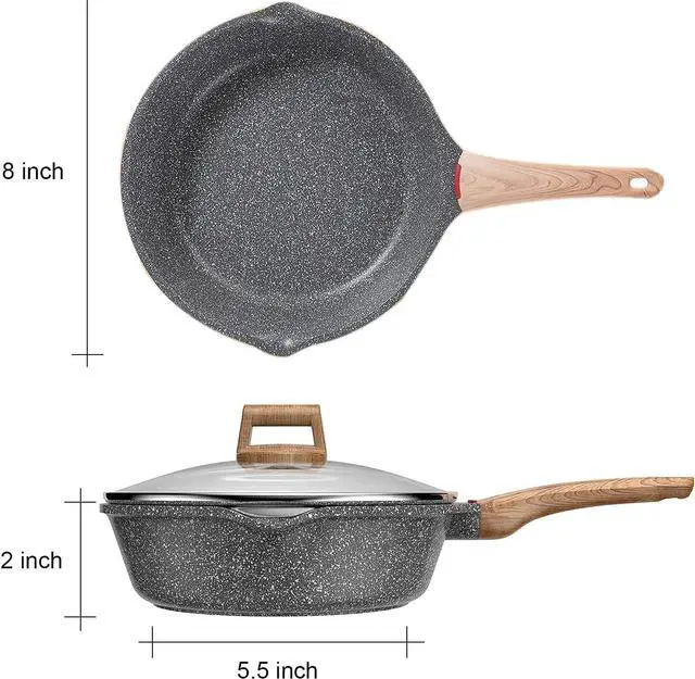 Superior material: Our non-stick frying pan is die-cast from Swiss granite rough stone to provide you with outstanding non-stick strength. It' s easier to cook with less health. Durable surface does not wear out, everyday use just like a new pot.