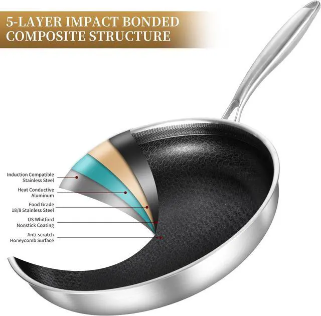All Inqibee tri-ply Clad pans made with a high pure aluminum core bonded together with 2 layers of durable stainless steel, excellent durability and even heat distribution, saved energy more than 25%