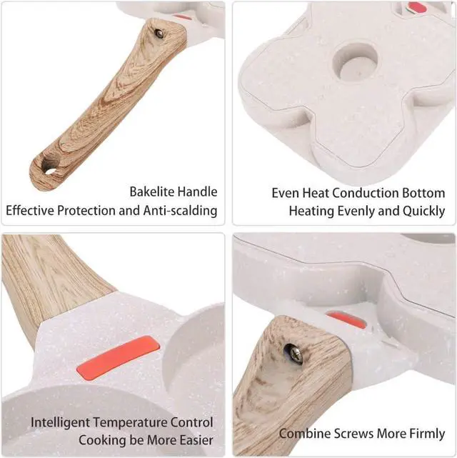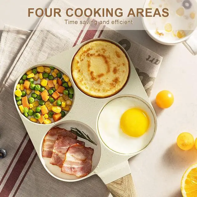 4-Cup Egg Frying Pan - This egg frying pan uses a four-hole design, which is perfect for cooking omelets, bacon, burgers, pancakes, etc. It can make cooking faster and easier, and save your time and energy for breakfast.