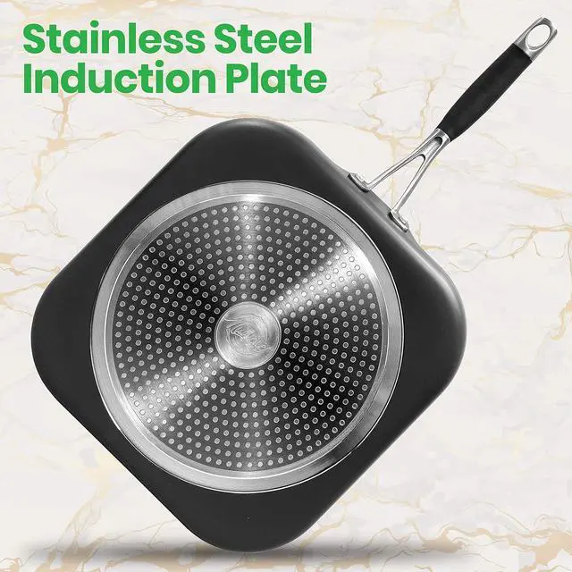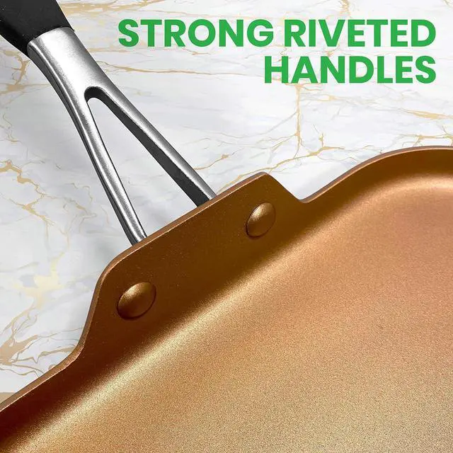 FOOD-GRADE SAFE: This nonstick griddle pan has food-grade safe, environmentally friendly construction. Safe for gas, electric, ceramic, and induction counter cooktops