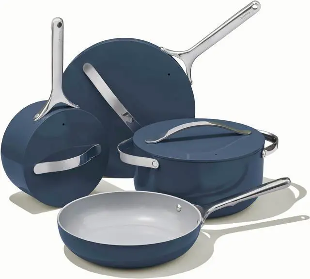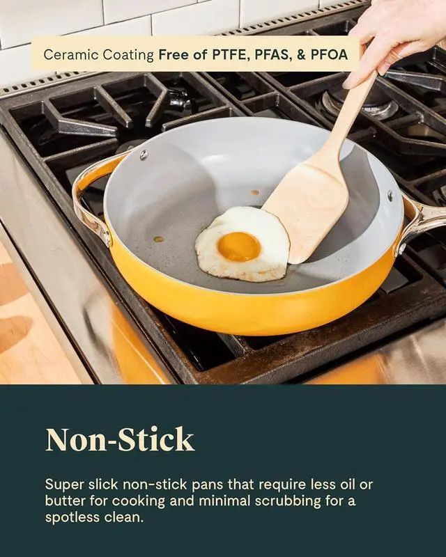NON-TOXIC COATING: All Caraway pot and pan sets are free of PTFE, PFOA, PFAS, lead, cadmium and other toxic materials that can leach into your food, making them safe for you, your family, and the environment.