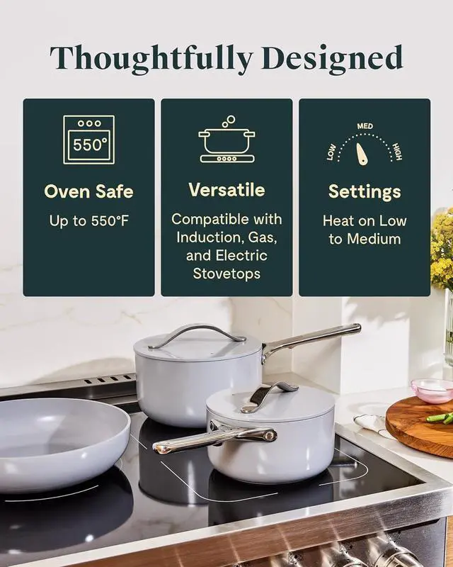 SIMPLE CARE: Our cookware ais made for any kitchen and cooktop. Use them on low to medium heat and add a dash of oil or butter for an effortless glide. Our cookware is also oven-safe up to 550ºF.