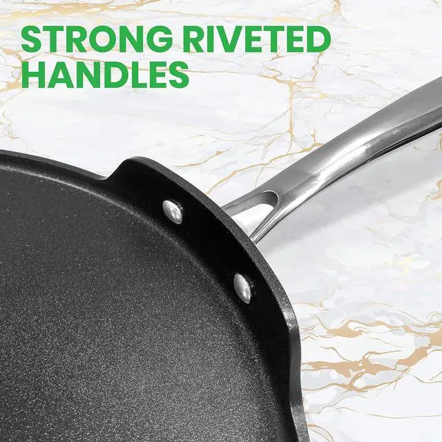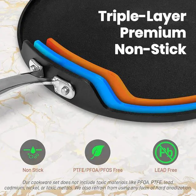 NONSTICK COATING: The 12" nonstick grill pan cookware features a non-stick coated layer surface that ensures quick, effortless food release and eliminates the need for butter, oil, or cooking spray. Makes tasty homemade food slide out easily