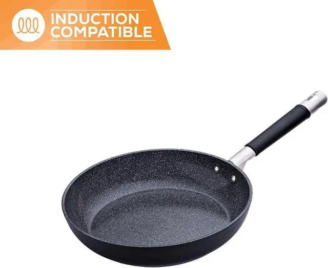 Superior Performance: Italian made frying pan nonstick, nontoxic, scratch resistant with cool-touch silicone wrapped stainless steal handel is oven safe to 450 degrees Fahrenheit. Our proprietary design allows our non-stick frying pan to heat up rapidly, evenly distribute temperature & will not peel off. Take pride in knowing this pan heats evenly and makes all your food look and taste better. Great for meat, fish, poultry, veal, pork chops, and eggs for omelets.