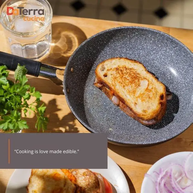 No Harmful Chemicals: Our nonstick pan contains no PTFE, PFOA, Lead, or Cadmium. DaTerra Cucina flat-bottom frying pans are artisan-made with a patented, all natural, multilayer nonstick coating that will last for years. Dishwasher safe with liquid detergent, hand wash recommended.