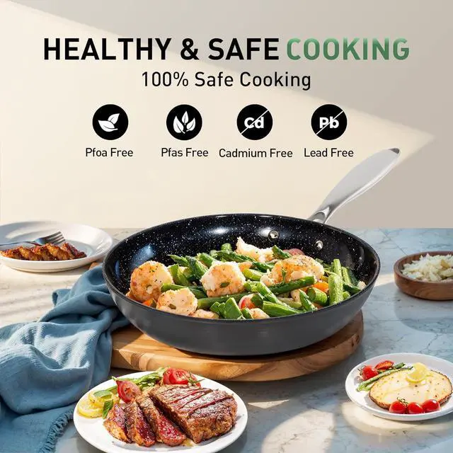 Healthy & Toxin-free: Kitchen Academy healthy ceramic nonstick coating is free of PFAS, PFOA, lead, and cadmium, making them safe for you, your family and the environment.