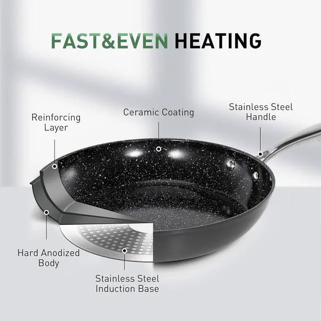 Durable Construction: The hard anodized exterior and forged design is built to stand the test of time. Ceramic nonstick coating keeps food sliding smoothly, making cooking easier and cleanup a breeze.