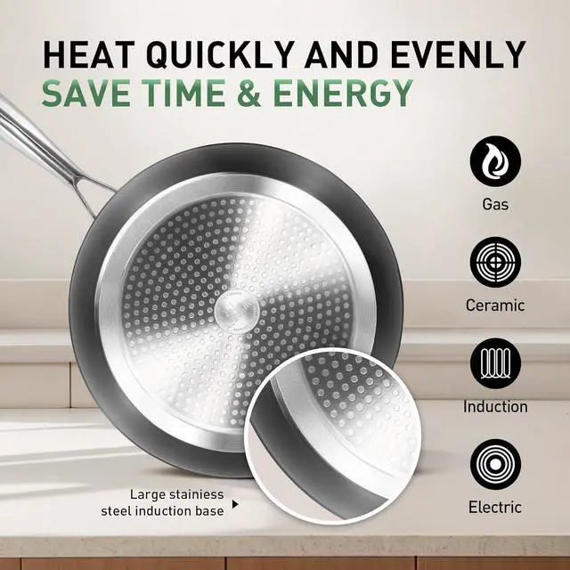 Lightweight frying pans set: The main materials of the kitchen academy frying pan include aluminum and stainless steel, which is very lightweight and easy to operate. Cooking novice friendly. Suitable as a housewarming gift.