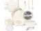 19-Piece Cookware Set Includes 1.5 QT saucepan, 3.2 QT saucepan, 3.4 QT stockpot, 9 frying pan, 11 frying pan, 6, 8, and 10 silicone lids, 6, 8 sealing lids, two detachable handles, a silicone slotted turner, a silicone ladle, a silicone locking tong, and four pot protectors.