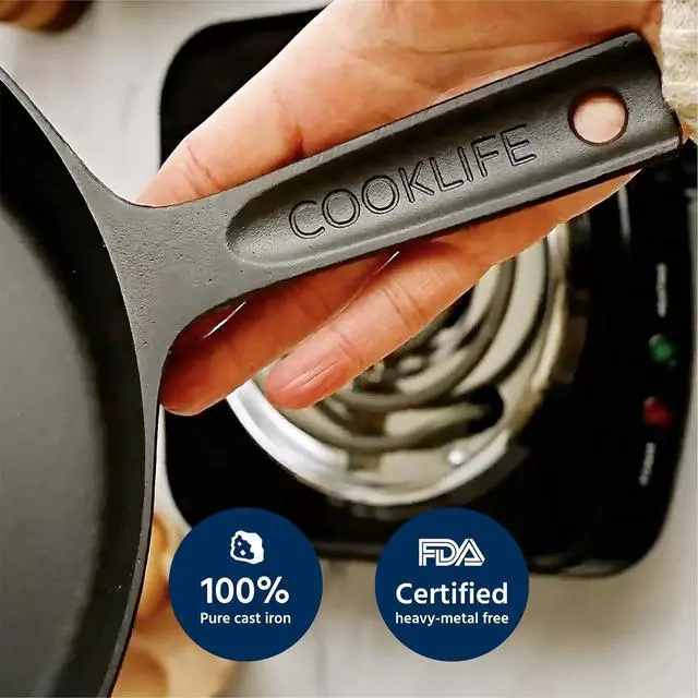 More Convenient and Easier to Clean: All Cooklife smooth cast iron skillets come pre-seasoned, saving you the lengthy initial seasoning process. Due to Cooklife' s fine polishing technique, the skillet surface is smoother and easier to clean than traditional cast iron, with a faster-forming seasoning layer. Of course, following traditional seasoning methods can further enhance the skillet' s performance and long-term seasoning effects.