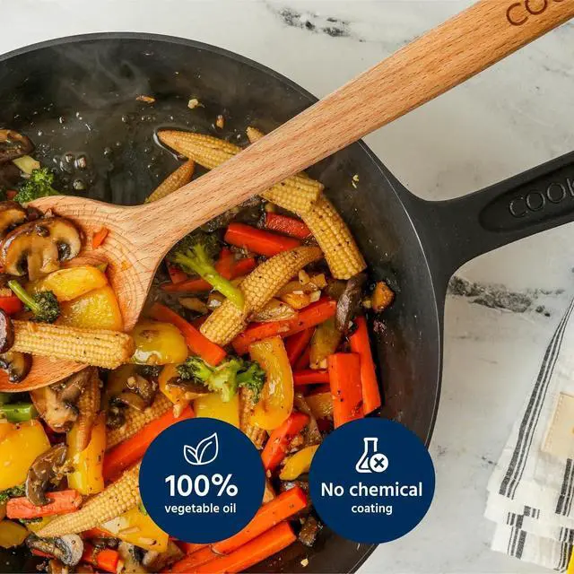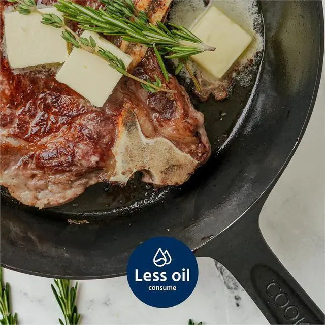 Season: COOKLIFE cast iron skillet is crafted with a fine polishing technique, making its surface smoother than traditional cast iron. This allows seasoning oils to spread more evenly and cover the surface better. Polished cast iron skillet' s unique design ensures that your skillet stays in excellent condition with the right care, forms a seasoning layer faster, and minimizes food sticking, providing reliable performance with minimal maintenance.