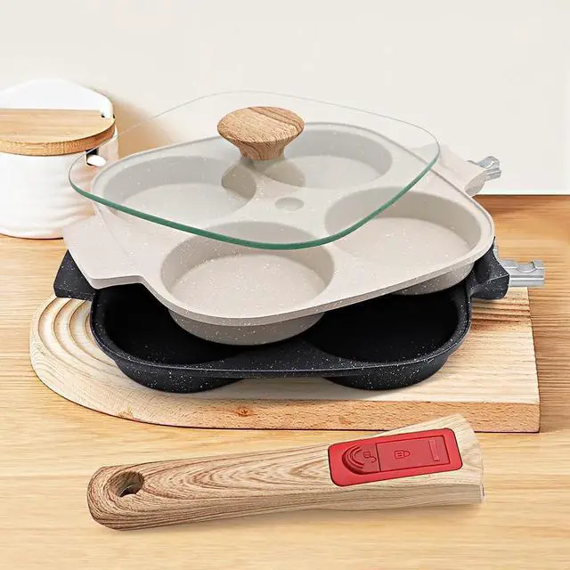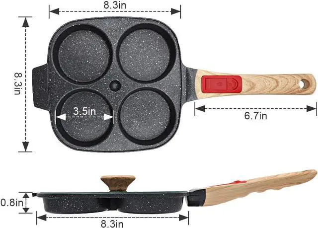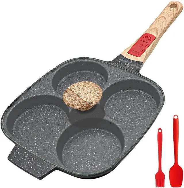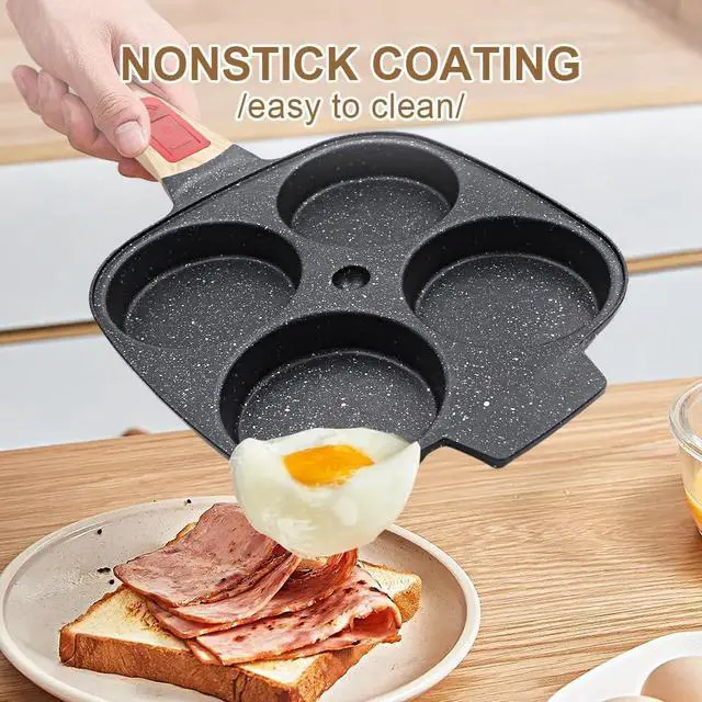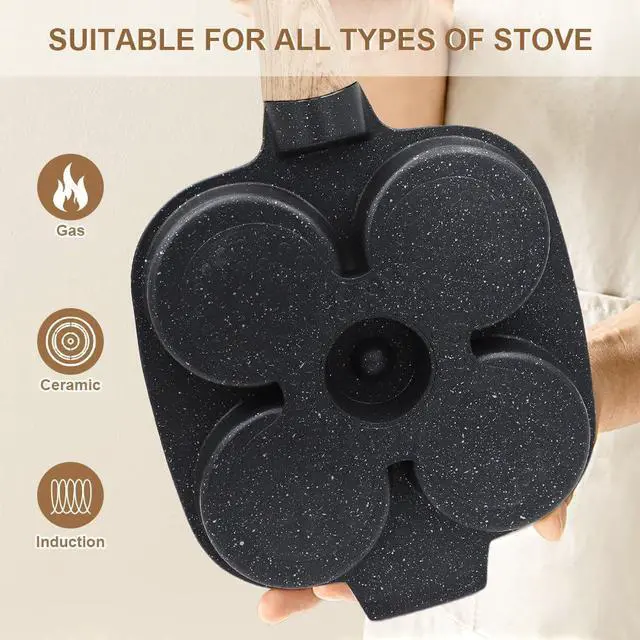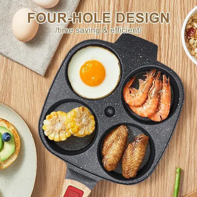 MULTI-SECTIONAL DESIGN - This egg pan uses a four-hole design, which is perfect for cooking omelets, meat patty, pancakes, etc. It can make cooking faster and easier, and save your time and energy for breakfast.