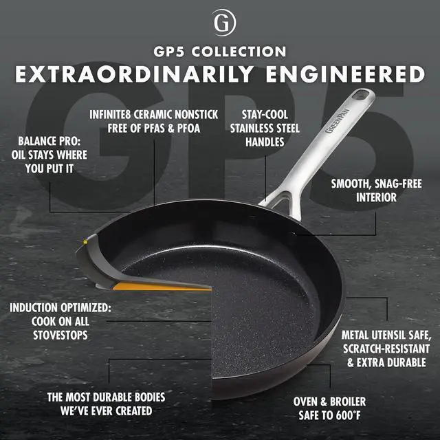 Infinite8: The most state-of-the-art ceramic nonstick GreenPan has ever created, an ultra-durable coating with layers of diamonds for cutting-edge performance and durability, metal utensil safe