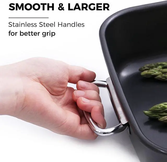 HEAVY-DUTY DESIGN - HONGBAKE lasagna pan with riveted comfortable stainless handles which are the perfect combination of ergonomics for better grip and to avoid slipping. Roll edges design protects your hands from hurt.