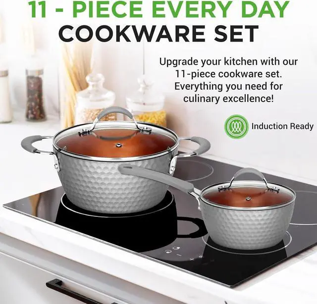 INDUCTION READY & VERSATILE: Compatible with gas, electric, ceramic, and induction stovetops. Includes heat-resistant nylon silicone utensils.