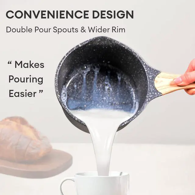 [Super Easy to Clean] - Our milk pan is non-stick and has no rivets inside. It effectively prevents food from sticking and is very easy to clean. It is easy to wash with just a sponge and soapy water