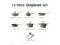 Cookware Set Includes: 8.15 " fry pan, 9.75 " fry pan, 9.75 " deep fry pan with lid, 1.5QT sauce pan with lid, 2.75QT casserole with lid, 5QT casserole with lid, 2 pcs nylon utensils. Our cookware set will meet your various demands of everyday cooking
