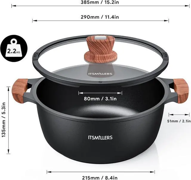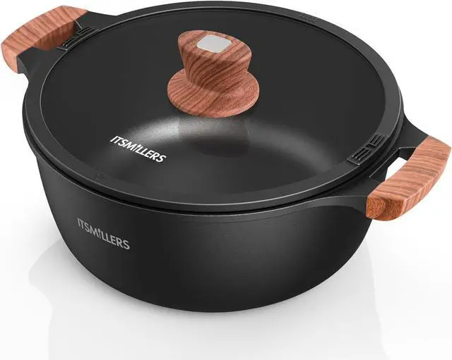 STURDY DIE CAST ALUMINUM BODY - The sturdy aluminum die casting body ensures fast and a stable heat distribution during cooking, rapidly heating up, which saves time and energy. Crafted with precision, this ItsMillers stockpot is designed to enhance your cooking experience while adding an elegant touch to your kitchen.