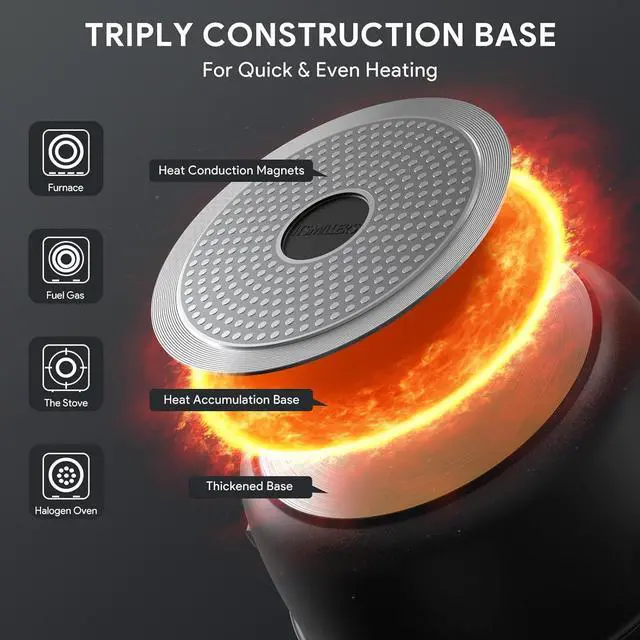 COMPATIBLE INDUCTION BOTTOM - With its induction bottom, this stockpot is compatible with all cooktops, making it versatile and suitable for various cooking methods. Whether you prefer gas, electric, ceramic, or induction stoves, our stockpot is built to accommodate your needs. The induction bottom also makes the stockpot conduct heat quickly and evenly, retain heat longer, saves energy and time which allows it to be placed evenly over heat source. Not suitable for oven.