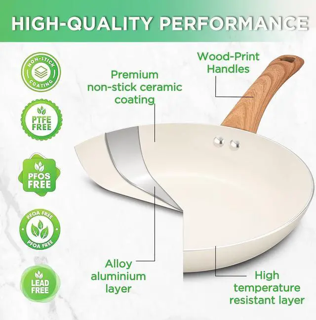 Glass Lid & Stay-Cool Handle: The wood grain handles are comfortable to hold and provide you with a safe and secure grip to keep your hands cool while you cook; The glass lid makes it easy to monitor the cooking process, prevent spills on the stove