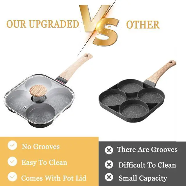 Breakfast Made Easy: Our unique egg frying pan cooks up your breakfast with ease with 4 holes in one pan; place an egg or pancake batter in each hole and make a variety of breakfast delicacies with one pan