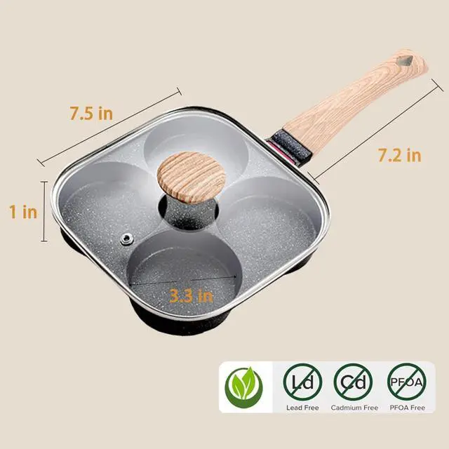 Easy Cleaning: The fried egg pan has nonstick stone coating which is harmless and non-stick, very easy to clean with water after cooking. Just use a soft sponge or cloth to remove oil stains easily
