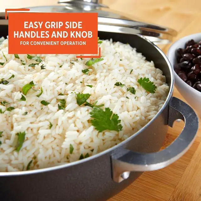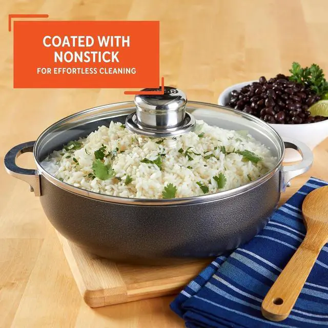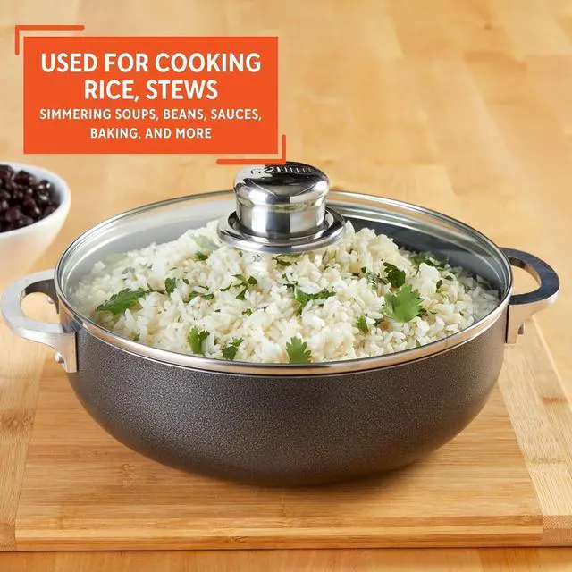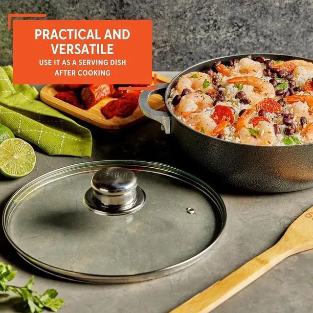 USER-FRIENDLY DESIGN: This caldero provides even heat distribution and is oven-safe without the lid, it includes easy-grip handles and a tight-fitting glass lid with a steam vent for precise cooking control