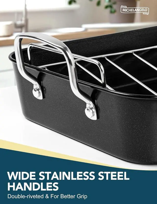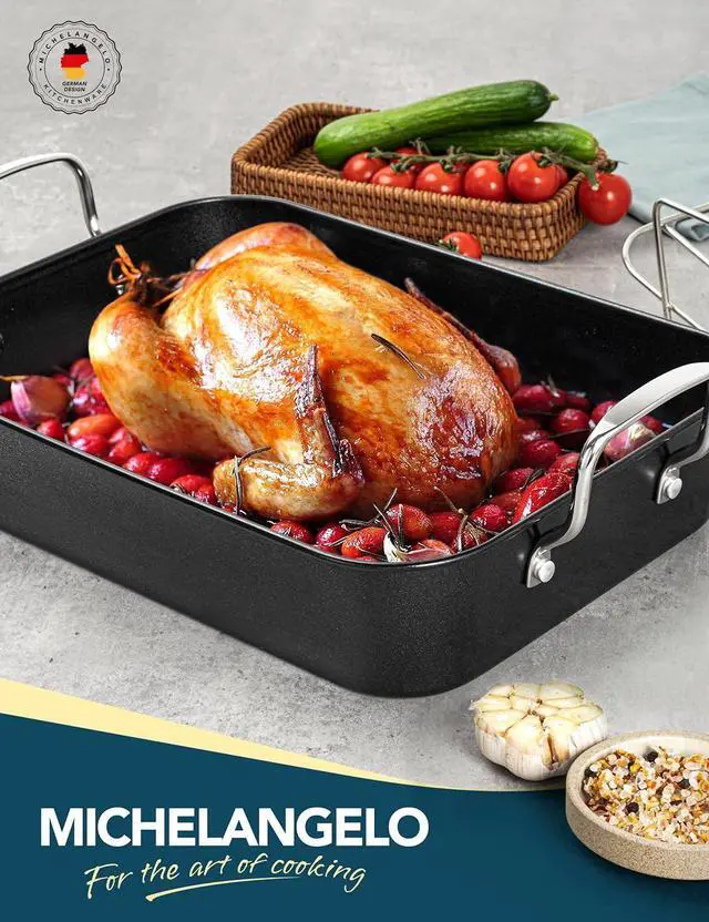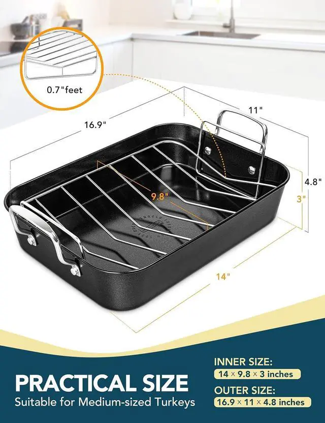 MULTIFUNCTIONAL ROAST PAN: his roast pan is perfectly sized for roasting chickens and turkeys or baking delicious treats, making it an essential tool for feeding a crowd or prepping meals.