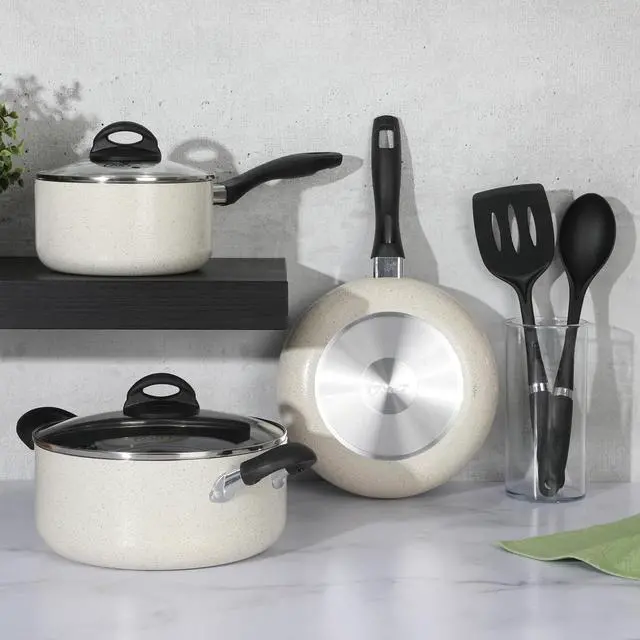 GET CREATIVE IN THE KITCHEN: From the basic techniques to the more elaborate recipes, Oster cookware meets the needs of home cooks to encourage creativity in the kitchen. Durable aluminum construction heats up and cooks food evenly to ensure that the ingredients and their natural flavors blend together, satisfying appetites and cravings every day.