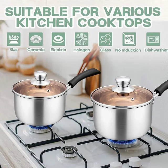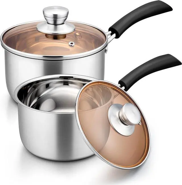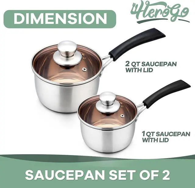 Saucepan set of 2, the sauce pan set comprises of 1-quart saucepan and 2-quart saucepan, perfect to make soup, sauces, boil eggs, cook oatmeal, melt butter, heat milk or other small portions, efficient for daily use