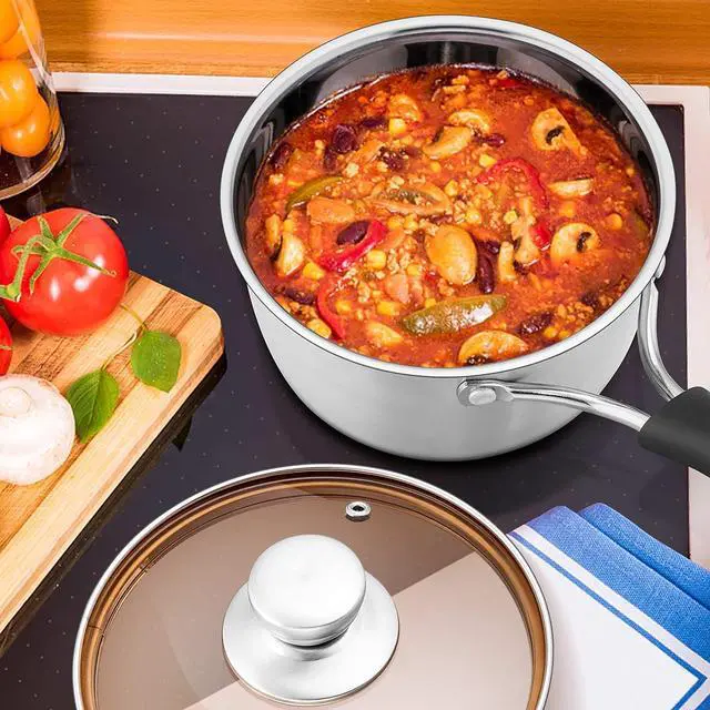 Heat quickly and evenly, stainless steel sauce pan is loop heating, thermal conductivity quickly and evenly, soild and thick flat bottom make the sauce pot compatible with various kitchen cooktops