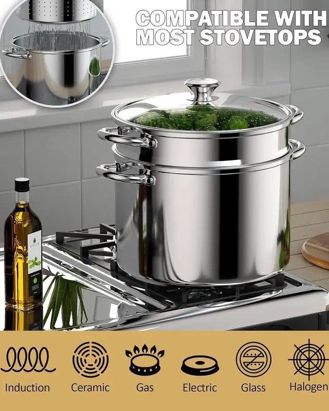 MULTI-FUNCTION - The Multipots Steamer has a variety of cooking functions, not only can be used to cook pasta but also can accommodate other foods, which is ideal for steaming vegetables, seafood, etc. It is a convenient and practical cooking tool.