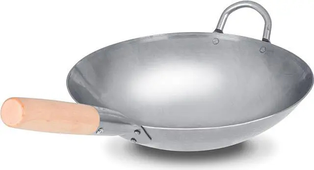 Steel helper handle will not burn when you stir fry over high heat, also helpful for hanging the wok for storage. Wooden handle has special hygroscopic not slippery surface for tight grip when you stir-fry.