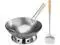 Comes with Wok Rack/Ring and Wok Spatula. Approximately 10" " & 18" ". To use Wok Rack/Ring place on top of (or remove) black grates and center over the burner to improve heating source. Wok Spatula designed for curvature of Wok to shovel and flip food easily.