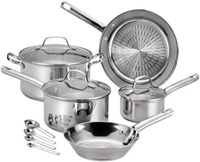 T-fal Performa Stainless Steel Cookware Set 12 Piece Induction Oven Broiler Safe 500F Pots and Pans, Dishwasher Safe Silver