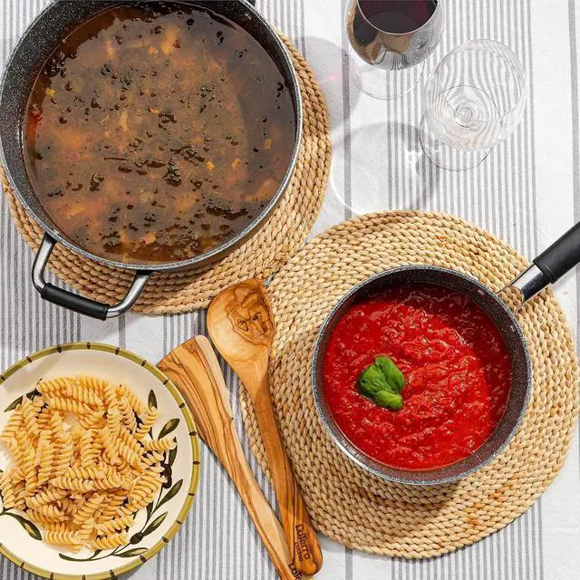 Made In Italy Induction Friendly: Professional-grade, ceramic-coated saucepan ensures even heat distribution, reduced need for oil & scratch-resistant durability. Thick 3.7 mm aluminum base heats quickly.