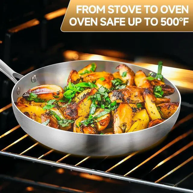 Dishwaher and Oven Safe: The high quality tri-ply clad make the pan dishwasher-safe and oven-safe up to 500°F