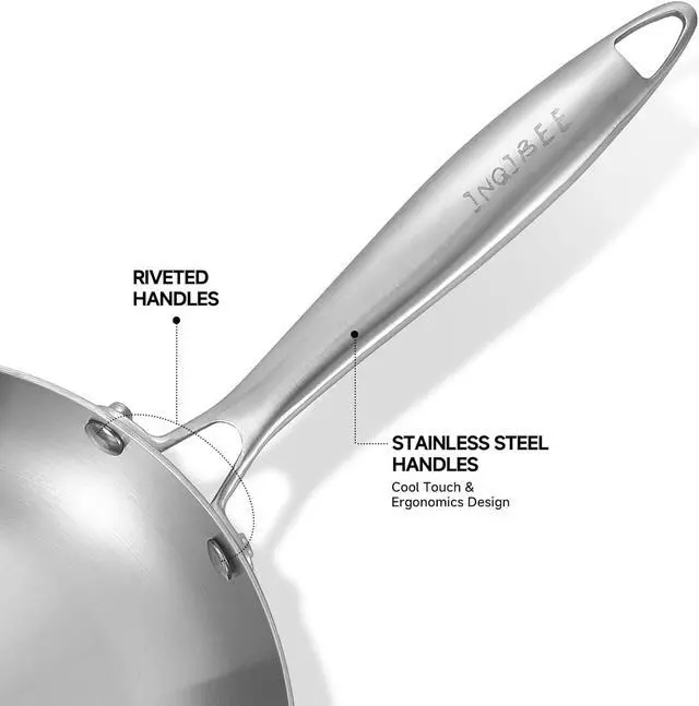 Made with a high pure aluminum core bonded together with 2 layers of durable stainless steel, excellent durability and even heat distribution