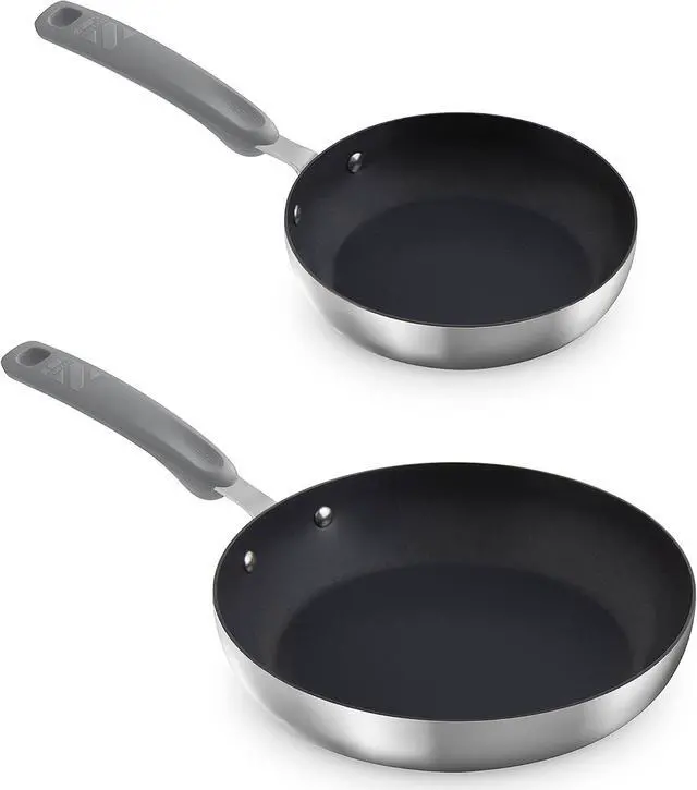 RESTAURANT QUALITY AT HOME: Elevate your everyday cooking with the Zakarian by Dash TruPro Stainless Steel 8" + 10" Fry Pan Set for searing, baking, grilling and roasting.