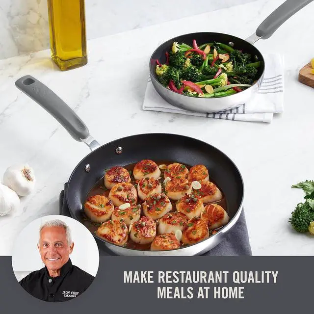INCLUDES: One 8 and one 10 Zakarian by Dash TruPro Stainless Steel Fry Pan, Recipe cards created by Chef Geoffrey Zakarian.