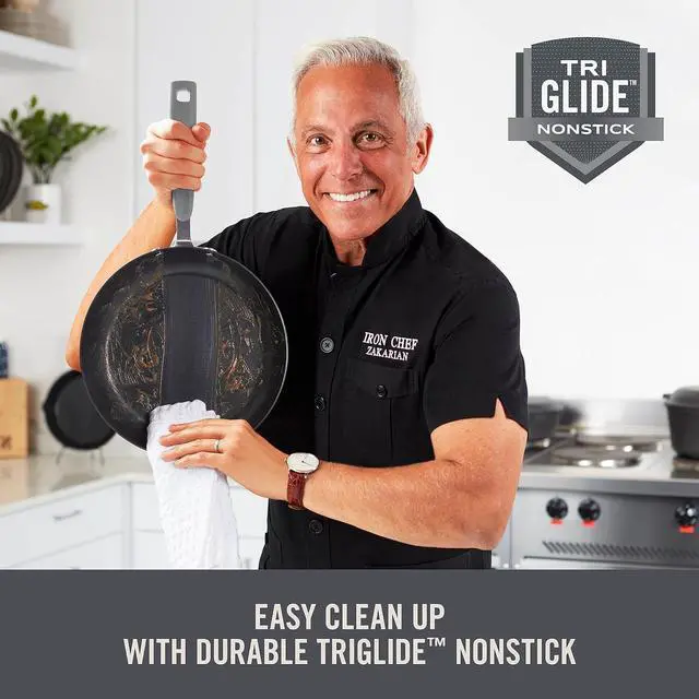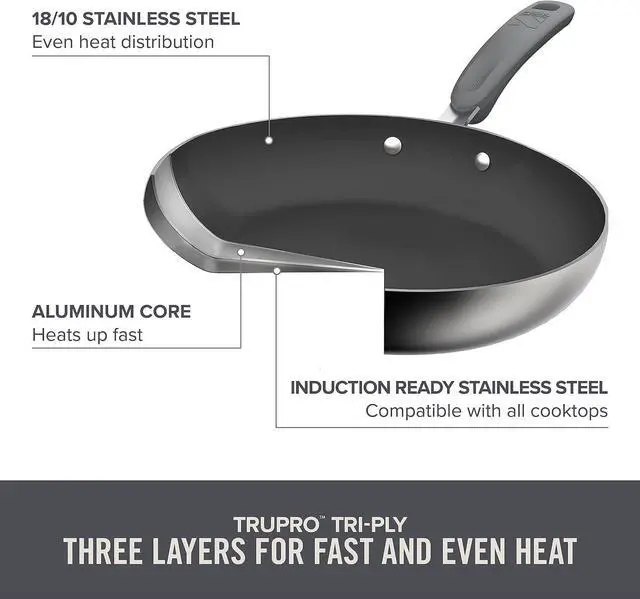 TRUPRO TECHNOLOGY: Tri-Ply TruPro stainless steel construction wraps top-quality stainless steel around a layer of aluminum for superior heat retention and distribution. TruPro TriGlide Nonstick coating releases food easily and provides superior scratch resistance and excellent durability.